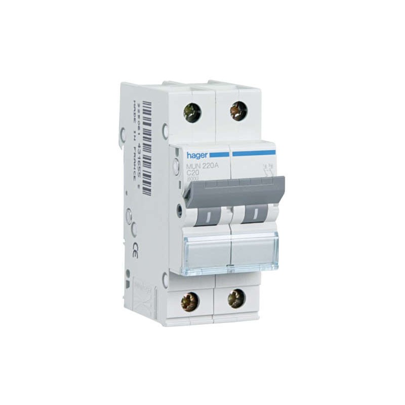 El interruptor automático Hager MUN210A 2x10A 230V – 6kA protege instalaciones residenciales y comerciales frente a sobrecargas y cortocircuitos. Con dos polos de 10A y curva C, pertenece a la gama Hager MUN y ofrece un poder de corte de 6kA. Su instalación es sencilla y garantiza seguridad y durabilidad en los sistemas eléctricos.