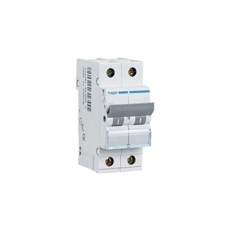 El interruptor automático HAGNDN220A, 2x20 A, curva D y 10 kA, protege los circuitos eléctricos contra sobrecargas y cortocircuitos. Su funcionamiento automático asegura la desconexión inmediata ante fallos, siendo ideal para aplicaciones con cargas inductivas como motores o transformadores y cumpliendo con los estándares de seguridad.