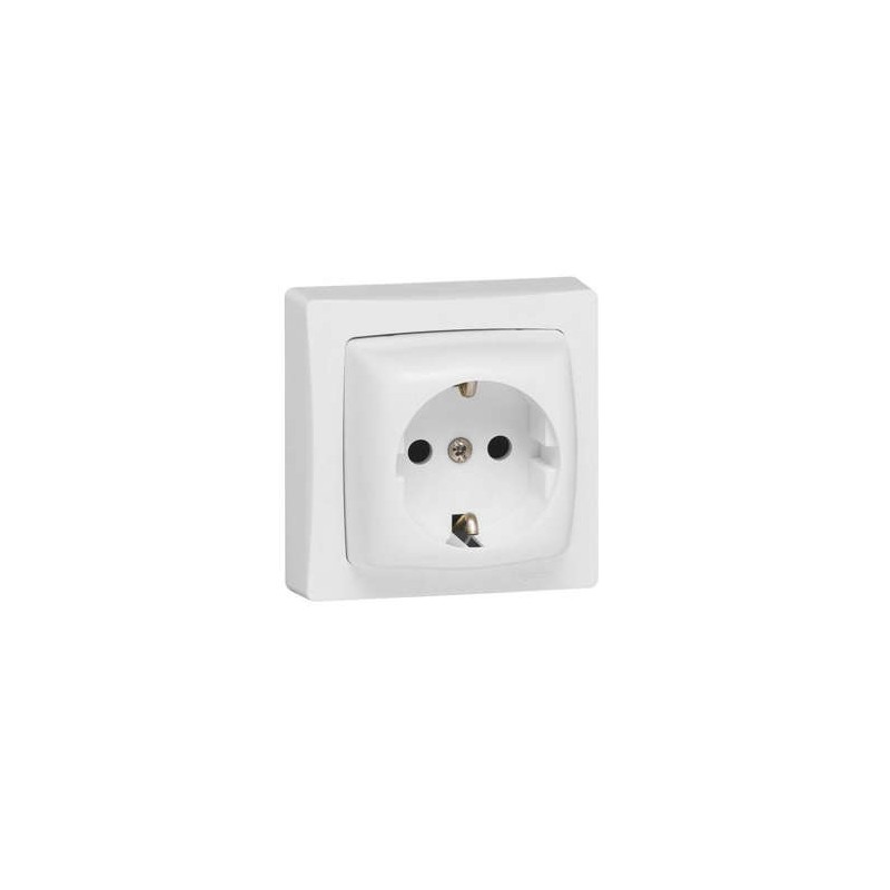Base de enchufe Legrand Oteo LEG086031, monobloc de superficie, 2 polos + tierra, 16?A a 250?V~. Incorpora obturador de protección infantil para mayor seguridad. Ideal para instalación directa sobre pared sin necesidad de empotrar, en entornos domésticos o comerciales.