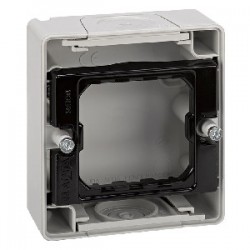 Base de caja estanca diseñada para alojar un elemento, en color gris. Ofrece una solución segura y resistente para instalaciones en exteriores o entornos con humedad y polvo. Fabricada con materiales de alta calidad, garantiza protección, durabilidad y un montaje fiable en aplicaciones tanto residenciales como industriales.