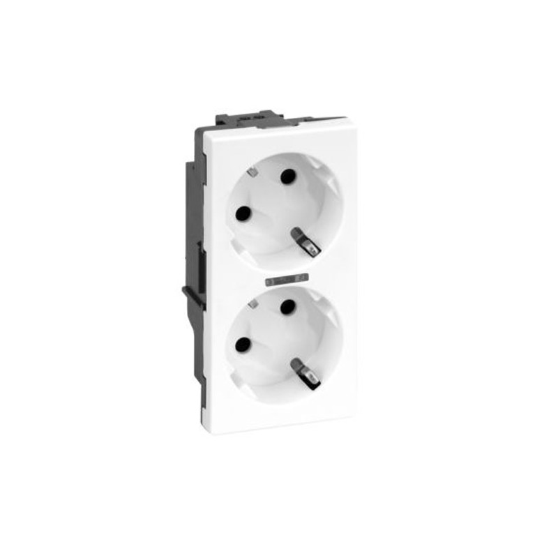 Base doble tipo Schuko diseñada para instalaciones empotradas o sobre superficies planas, con indicador LED que señala el estado de alimentación. Soporta hasta 16?A y 250?V, ofreciendo una conexión segura y fiable. Su acabado blanco permite una integración discreta en cualquier entorno, garantizando durabilidad y un uso seguro en aplicaciones residenciales, comerciales o profesionales.