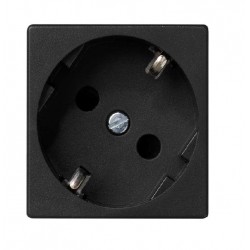 Base de enchufe individual tipo Schuko, con sistema de seguridad para protección adicional frente a contactos accidentales. Incluye embornamiento a tornillo para una instalación firme y segura. Acabado en grafito, ideal para integrar en entornos modernos y profesionales.