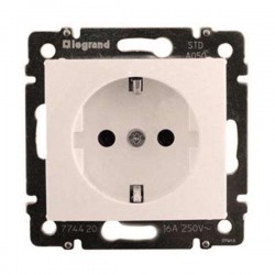 El código LEG774421 corresponde a una toma de corriente de la serie Valena de Legrand, en color blanco. Es una toma 2 polos + tierra (2P+T) con obturador de seguridad, diseñada para conectar dispositivos eléctricos de forma segura, protegiendo contra contactos accidentales. Su acabado blanco y diseño moderno facilitan su integración en cualquier instalación.