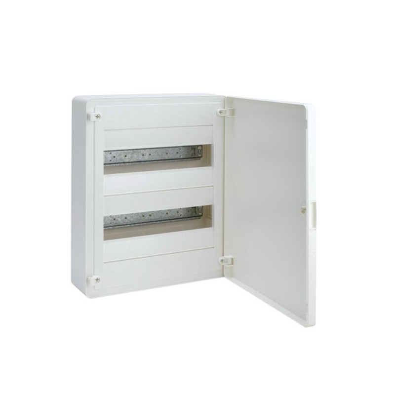 Caja de superficie Hager HAGVS212PE, serie Golf VF, de 2 filas. Diseñada para alojar y proteger interruptores, diferenciales y otros componentes eléctricos en instalaciones de superficie. Su formato resistente facilita la organización interna y la instalación, adecuada para aplicaciones residenciales y terciarias.