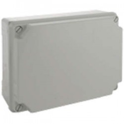 Caja estanca de gran tamaño, fabricada en plástico resistente, con tapa ciega que protege el interior de polvo y humedad. Sus dimensiones de 310 x 240 x 125 mm ofrecen amplio espacio para alojar conexiones eléctricas, componentes o derivaciones. Cumple con el grado de protección IP65, asegurando seguridad y durabilidad en instalaciones interiores y exteriores. Ideal para proyectos que requieren robustez y confiabilidad.