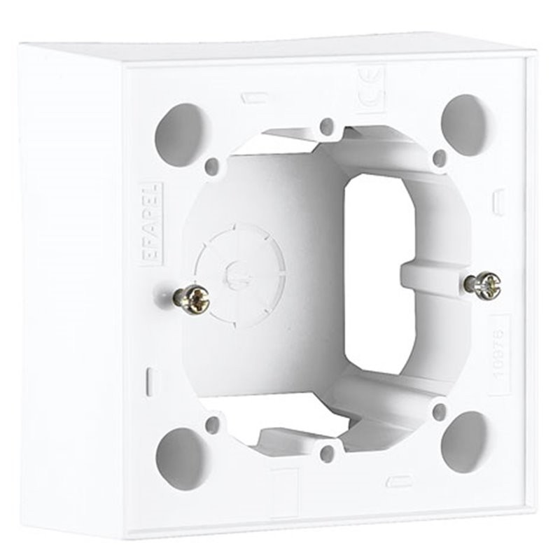 Caja de superficie diseñada para la instalación de mecanismos de la serie Logus 90. Permite montar interruptores, tomas y otros dispositivos sobre la pared sin necesidad de empotrar, facilitando la instalación en paredes sólidas o en situaciones donde no es posible el empotramiento. Fabricada en material resistente para uso residencial y comercial.