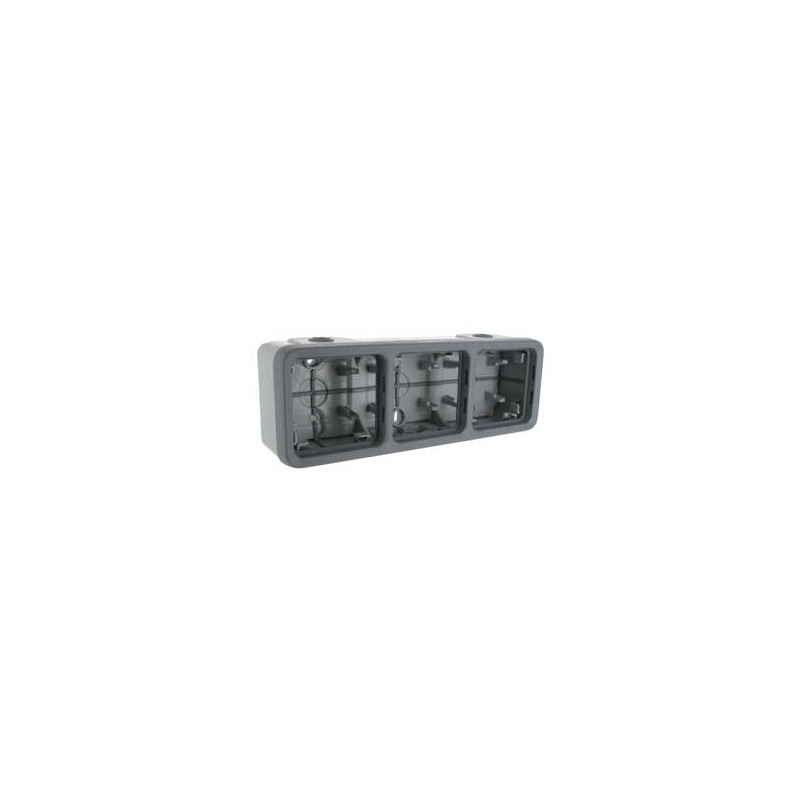 Caja de Superficie de 3 Elementos Gris Plexo Horizontal