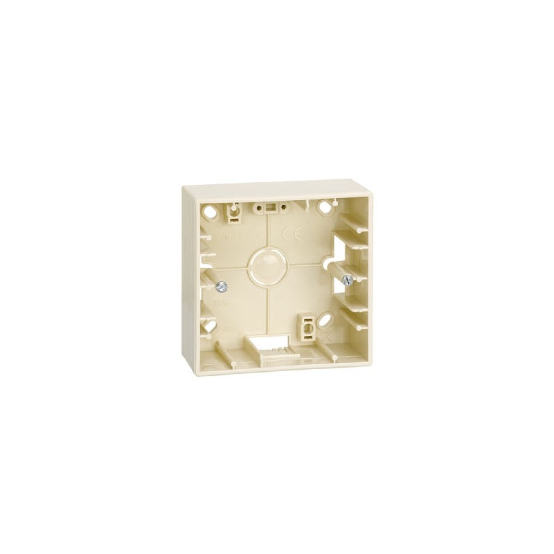 Caja de superficie para un elemento, en color marfil. Ideal para instalaciones donde no es posible empotrar, facilita una instalación sencilla y segura sobre paredes o superficies visibles. Fabricada con materiales resistentes, asegura durabilidad y un acabado limpio y discreto en ambientes residenciales o comerciales.