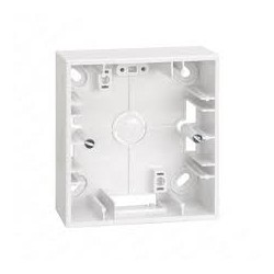 Caja de superficie para un elemento, con dimensiones 86 x 93 x 37 mm, en color blanco. Ideal para instalaciones donde no es posible empotrar, facilita una fijación segura y rápida sobre paredes o superficies visibles. Fabricada con materiales resistentes, garantiza durabilidad y un acabado limpio en entornos residenciales o comerciales.