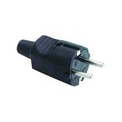 Clavija bipolar SOL706C con toma de tierra lateral (T/T), 16A y 250V, con espigas de 4,8 mm de diámetro. Fabricada en caucho negro, ofrece resistencia, durabilidad y seguridad en conexiones eléctricas. Su diseño robusto y confiable es ideal para uso doméstico o profesional en instalaciones que requieren protección y facilidad de manejo.