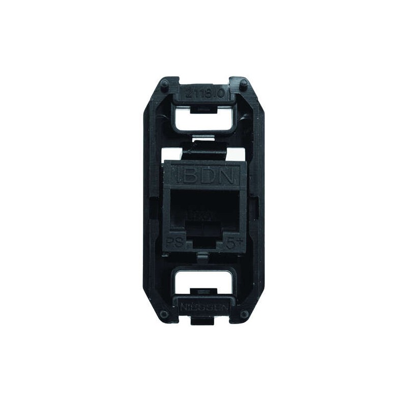 Es un soporte con conector hembra RJ45 categoría 5e UTP, diseñado para instalaciones de red de datos. Compatible con las series de mecanismos Niessen, permite una conexión fiable y eficiente en sistemas de cableado estructurado. Ideal para entornos residenciales o profesionales.