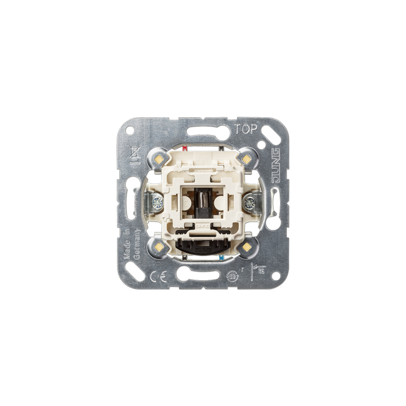 El JUG506KOU es un conmutador empotrable de 10 A y 250 V, equipado con una lámpara neón indicadora que facilita la identificación visual del estado del interruptor. Ideal para controlar puntos de luz desde dos ubicaciones, combina funcionalidad y seguridad en instalaciones residenciales y comerciales.