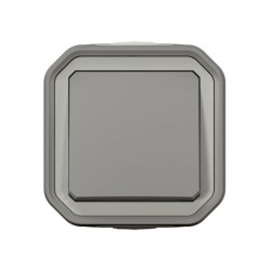Conmutador Legrand Plexo 069711L, montaje en superficie, 10?A y 250?V. Diseño monobloc en color gris, con protección IP55 contra agua y polvo e IK08 contra impactos. Permite controlar una luz desde dos puntos, ideal para exteriores, garajes o zonas industriales.