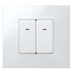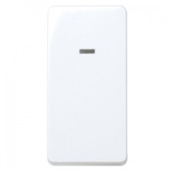 Conmutador de módulo estrecho en color blanco, equipado con indicador luminoso para facilitar su localización en ambientes oscuros. Ideal para controlar la iluminación desde varios puntos con un diseño compacto y funcional. Fabricado con materiales duraderos, es compatible con la serie Simon 27, asegurando una instalación segura y fiable.