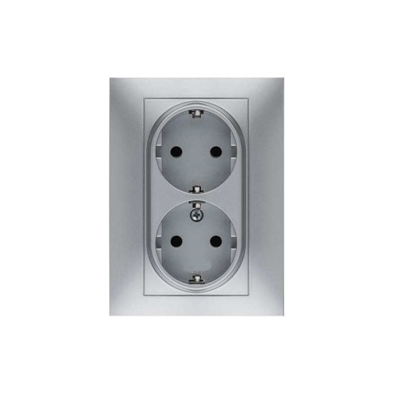 Doble base de enchufe fabricada en aluminio resistente, que incorpora toma de tierra para mayor seguridad en las instalaciones eléctricas. Diseñada para montaje en superficie, ofrece durabilidad y protección frente a impactos y desgaste. Ideal para entornos residenciales, comerciales e industriales donde se requiere una solución segura y robusta para la conexión eléctrica, garantizando un contacto fiable y seguro.