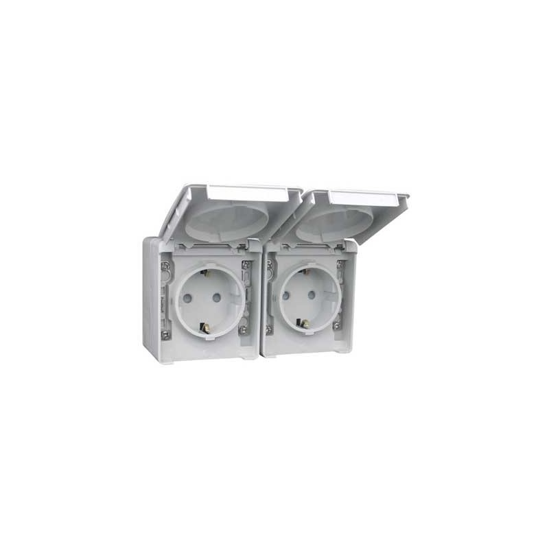 Doble base Schuko horizontal proteccion Serie ESTANCA 48 gris