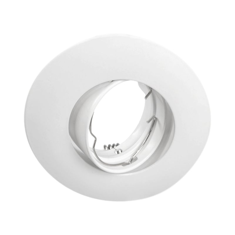 CNX402401 Empotrable redondo basculante Ø105 GU10 blanco, aro empotrable orientable fabricado en material resistente con acabado blanco, compatible con lámparas GU10, diámetro Ø105 mm, permite dirigir la luz de manera precisa, ideal para instalación en techos y proyectos de iluminación interior decorativa o funcional, combinando durabilidad, seguridad y diseño elegante.