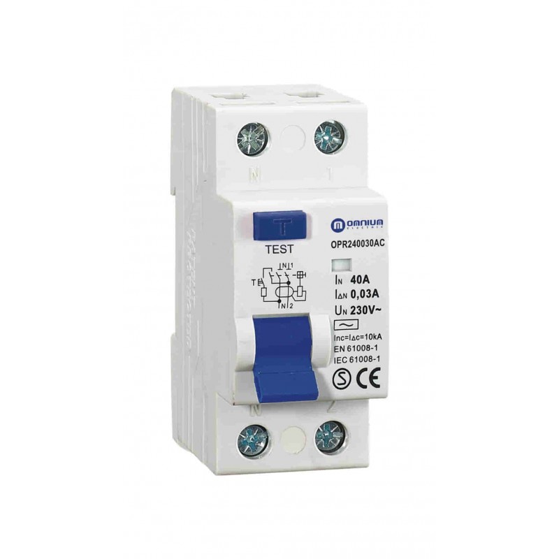 El interruptor diferencial Omnipr OMNOPR240030AC 1P+N 40A 230V – 30mA protege instalaciones residenciales y comerciales frente a fugas de corriente que podrían causar descargas eléctricas. Con un polo más neutro (1P+N), intensidad nominal de 40A, sensibilidad de 30mA y clase AC, detecta corriente alterna sinusoidal y desconecta automáticamente el circuito en caso de fuga. Su instalación es sencilla y garantiza seguridad y protección de los equipos eléctricos.