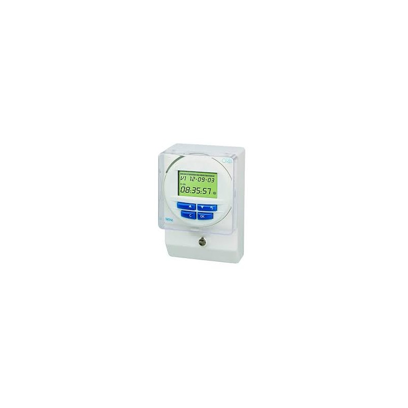 Interruptor horario digital de la serie Mini Log, diseñado para programar encendidos y apagados automáticos de iluminación o equipos eléctricos en espacios reducidos. El modelo ORBOB250512 funciona a 230?V?CA, ofreciendo un control preciso y contribuyendo al ahorro energético. Su formato compacto facilita la instalación en cuadros eléctricos pequeños, garantizando fiabilidad y comodidad de uso.