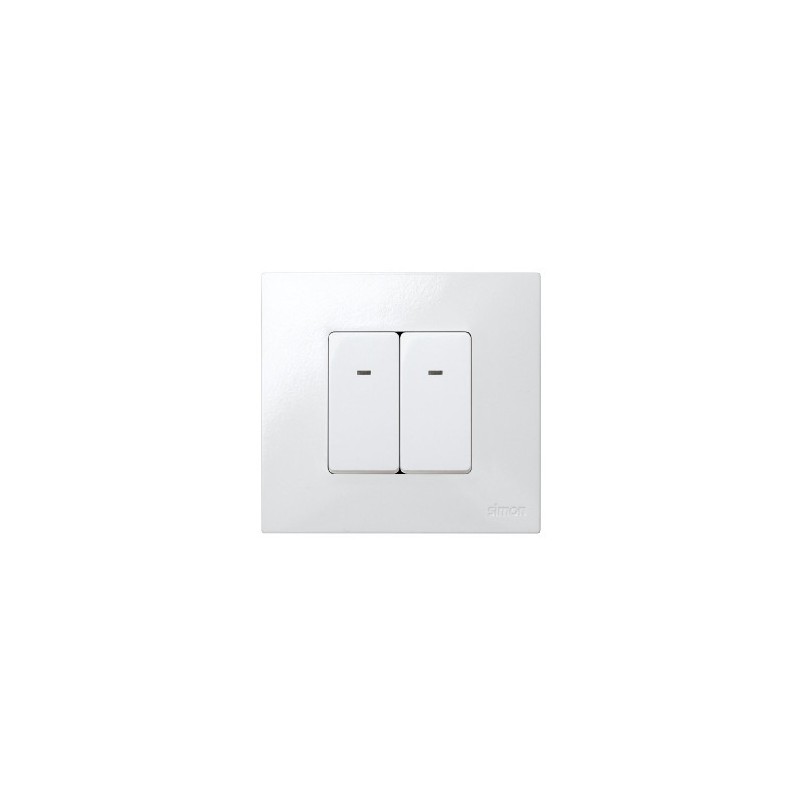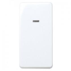 Interruptor módulo estrecho en color blanco, equipado con indicador luminoso para facilitar su localización en ambientes oscuros. Ideal para controlar la iluminación con un diseño compacto y funcional. Fabricado con materiales duraderos, compatible con la serie Simon 27 para una instalación segura y práctica.