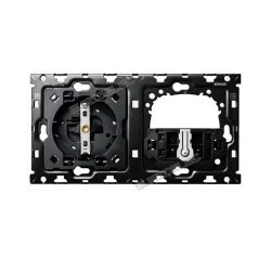 Kit de mecanismo de 2 elementos de la serie SIMON 100, que incluye una base de enchufe, un conmutador y un cargador USB. Diseñado para ofrecer una solución completa en un solo conjunto, ideal para espacios que requieren alimentación eléctrica, control de iluminación y carga de dispositivos. Fabricado con materiales de alta calidad, garantiza un funcionamiento fiable, instalación segura y total compatibilidad con bastidores y tapas frontales de la misma gama.