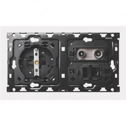 Kit de mecanismo de 2 elementos que incluye base de enchufe, toma de TV y conector RJ45, perteneciente a la serie SIMON 100. Ofrece una solución completa para instalaciones que requieren conexión eléctrica y de datos en un solo punto. Fabricado con materiales de alta calidad, garantiza fiabilidad, durabilidad y compatibilidad con bastidores y tapas frontales de la misma gama. Ideal para entornos residenciales y profesionales donde se busca funcionalidad y estética.