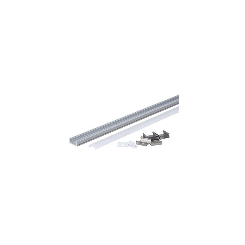 MLDMP0SKIT1B Kit perfil de aluminio para superficie 18x10 mm en color blanco, incluye 2 metros de perfil, difusor, tapas y grapas, fabricado en aluminio resistente con acabado duradero, ideal para instalar tiras LED sobre superficies visibles, ofreciendo protección, acabado estético y facilidad de montaje en proyectos de iluminación interior decorativa o funcional.
