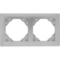 Marco en acabado aluminio diseñado para alojar dos elementos modulares en sistemas empotrables. Su diseño moderno y resistente lo hace ideal para aplicaciones residenciales y comerciales donde se desea una apariencia contemporánea y duradera.