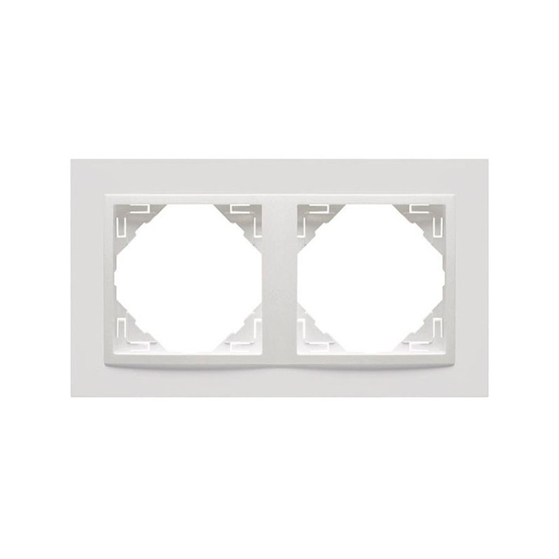 Marco en acabado blanco de la línea Animato, diseñado para alojar dos elementos modulares. Combina funcionalidad y un diseño moderno, aportando un estilo estilizado y actual para instalaciones eléctricas residenciales o comerciales.