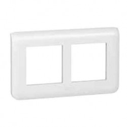 Marco Legrand LEG078804, color blanco, para 2x2 módulos en formato horizontal, compatible con la serie Mosaic II. Fabricado en termoplástico libre de halógenos, con acabado brillante y dimensiones de 82 × 152 mm. Ideal para instalaciones residenciales, comerciales o industriales que requieren una apariencia limpia y moderna.