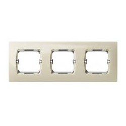 Marco para tres elementos en color marfil, sin garras de sujeción. Diseñado para embellecer y proteger mecanismos eléctricos o de comunicación en instalaciones modulares, ofreciendo un acabado uniforme y discreto. Compatible con sistemas estándar, garantiza una instalación sencilla y duradera en entornos residenciales o comerciales.