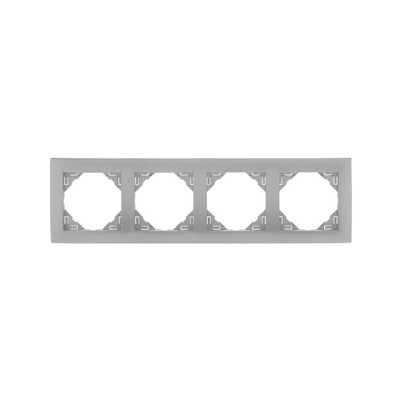 Marco en acabado aluminio diseñado para alojar cuatro elementos modulares en sistemas empotrables. Combina durabilidad y estilo moderno, ideal para aplicaciones residenciales y comerciales que requieren una instalación eléctrica ordenada y con un acabado elegante.