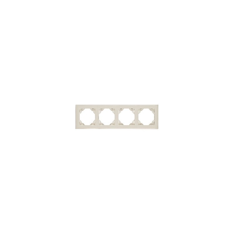Marco en acabado marfil diseñado para alojar cuatro elementos modulares en sistemas empotrables. Ofrece una solución funcional y estética para instalar múltiples mecanismos en una sola estructura, manteniendo una apariencia uniforme y elegante en aplicaciones residenciales y comerciales.