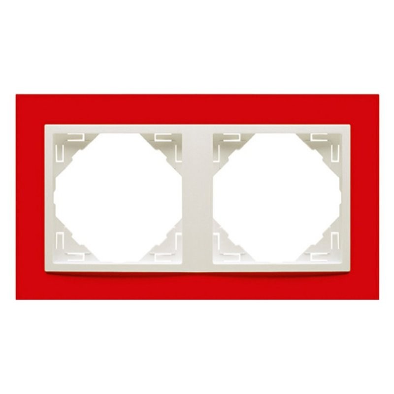 Marco para dos elementos modulares con acabado bicolor rojo y hielo, que combina funcionalidad con un diseño vibrante y moderno. Ideal para instalaciones eléctricas que buscan un toque de color y estilo en ambientes residenciales o comerciales.