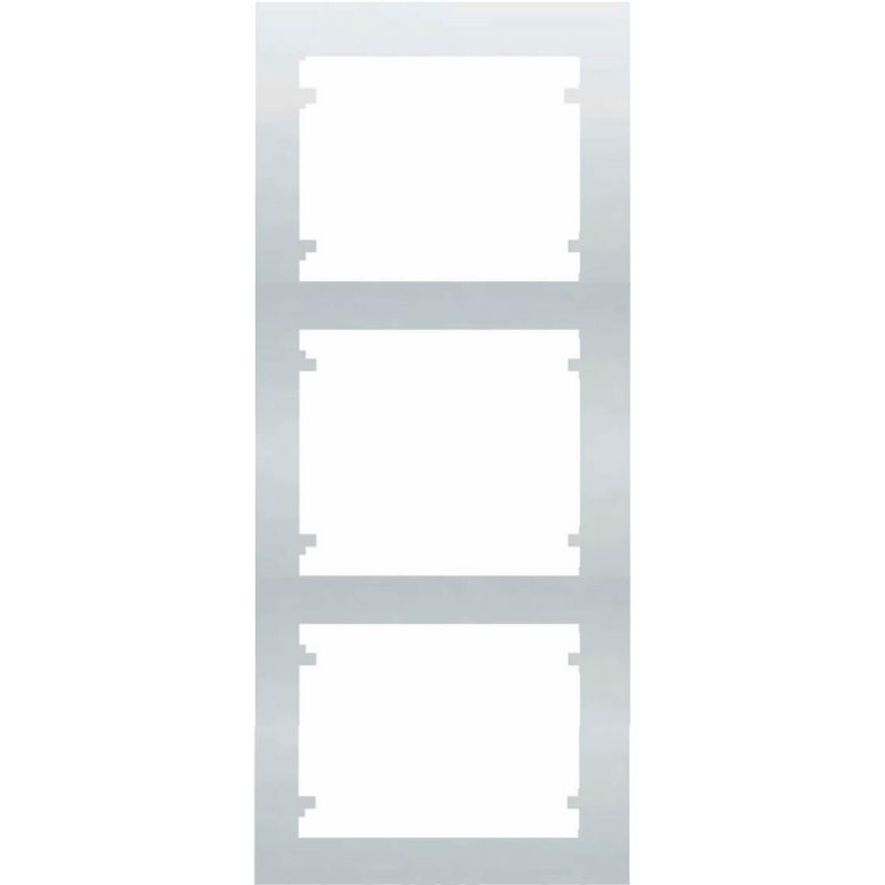 Marco decorativo vertical para mecanismos eléctricos de tres elementos, con acabado blanco que aporta un estilo limpio y moderno. Fabricado en material resistente y fácil de mantener, garantiza un montaje seguro y una presentación uniforme en la instalación. Ideal para entornos residenciales o comerciales que requieran durabilidad y estética discreta.