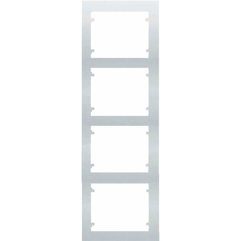 Marco decorativo vertical para mecanismos eléctricos de cuatro elementos, con acabado blanco que proporciona un estilo limpio y moderno. Fabricado en material resistente y fácil de mantener, asegura un montaje seguro y una presentación uniforme. Ideal para entornos residenciales o comerciales que requieran durabilidad y estética discreta.