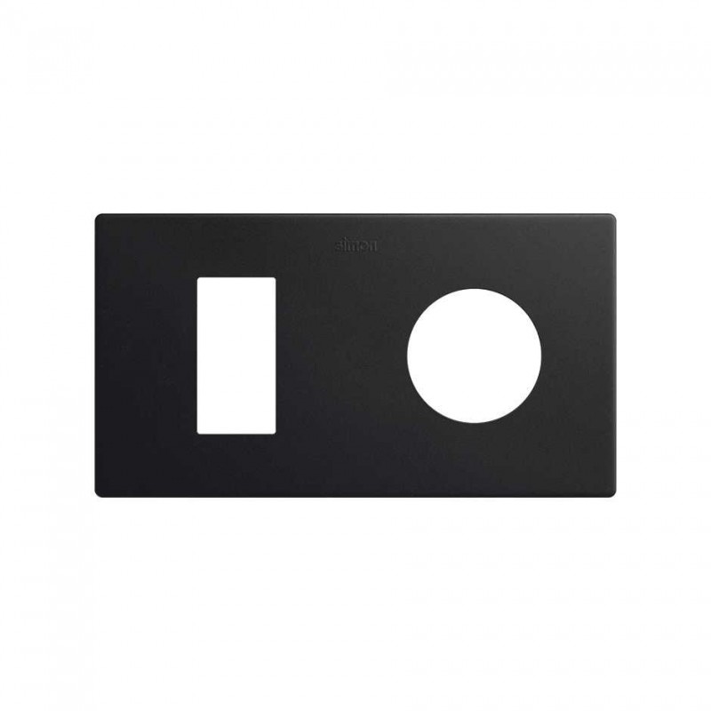 Marco de la serie SIMON 270 en acabado negro mate, diseñado para alojar 2 elementos. Incorpora un enchufe de seguridad y un módulo estrecho, ofreciendo una solución compacta, funcional y de diseño contemporáneo. Fabricado con materiales de alta calidad, garantiza resistencia, durabilidad y fácil mantenimiento. Compatible con el modelo 27191620-098, es perfecto para instalaciones eléctricas en entornos residenciales o comerciales que requieran un acabado moderno y elegante.