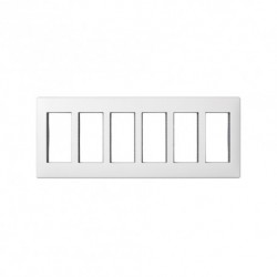 Marco diseñado para instalaciones empotradas de 6 módulos, con acabado blanco que se integra de manera discreta y profesional en cualquier entorno. Su construcción robusta garantiza un montaje seguro y firme, ofreciendo durabilidad y fiabilidad en proyectos residenciales o comerciales. Ideal para organizar mecanismos eléctricos de forma ordenada y estética.