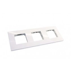 Marco Play diseñado para alojar tres elementos, en color blanco. Ideal para embellecer y proteger mecanismos eléctricos o de comunicación, ofrece un acabado limpio y moderno. Fabricado con materiales resistentes, garantiza durabilidad y una instalación sencilla en entornos residenciales o comerciales.