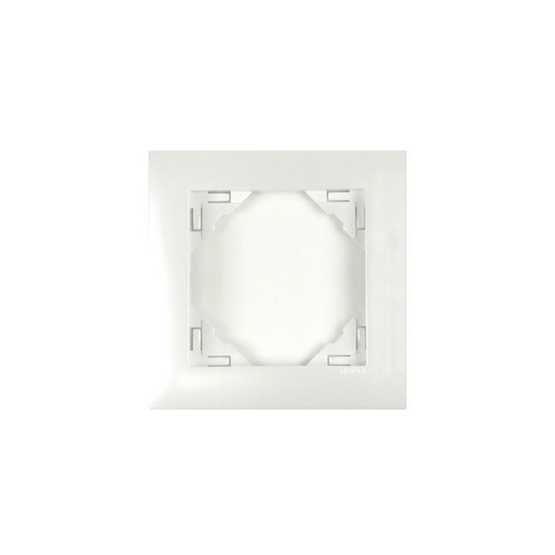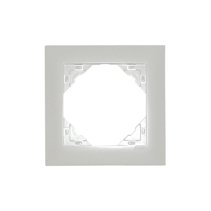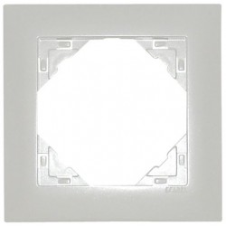 Marco en acabado hielo (gris claro) diseñado para alojar un solo elemento modular en sistemas empotrables. Ofrece un diseño limpio y contemporáneo, ideal para integrarse discretamente en espacios modernos tanto residenciales como comerciales.