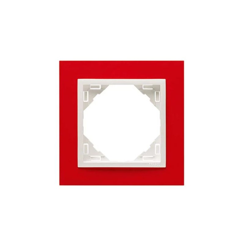 Marco para un elemento modular con acabado bicolor rojo y hielo, que aporta un toque llamativo y moderno a las instalaciones eléctricas. Ideal para espacios que buscan combinar funcionalidad con un diseño vibrante y atractivo.
