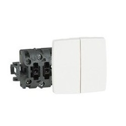 Conmutador Doble Legrand Oteo 086120, mecanismo componible para controlar dos circuitos de iluminación desde un mismo punto. Soporta 10 A y 250 V, acabado blanco y fácil instalación. Compatible con marcos Oteo.