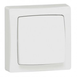 Pulsador Legrand Oteo, para montaje en superficie, ideal para accionar timbres, luces o mecanismos eléctricos momentáneos. Ofrece un diseño limpio en color blanco, fácil de instalar y seguro, perfecto para hogares, oficinas o espacios comerciales.