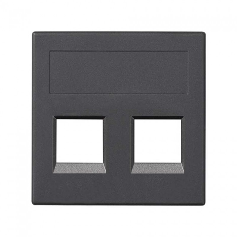 Placa diseñada para alojar módulos de voz y datos en formato plano, con capacidad para 2 módulos. El modelo SIM50011189038, en color grafito, permite una instalación ordenada y segura de conectores RJ45 u otros módulos compatibles, garantizando conexiones fiables y un acabado estético en entornos residenciales o profesionales.