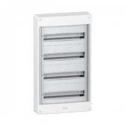 Cuadro de superficie de la gama Pragma con capacidad para 18 módulos distribuidos en 4 filas. Ofrece una instalación práctica y segura, con diseño robusto y estético para integración en paredes. Ideal para aplicaciones residenciales y terciarias, garantizando orden, accesibilidad y protección en la distribución eléctrica.