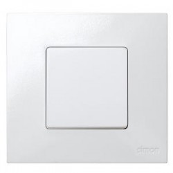 Pulsador neutro de módulo ancho en color blanco, diseñado para controlar circuitos eléctricos desde un punto. Ideal para instalaciones empotradas que requieren un mando de mayor tamaño para facilitar el uso. Fabricado con materiales duraderos, ofrece una operación fiable y es compatible con la serie Simon 27.