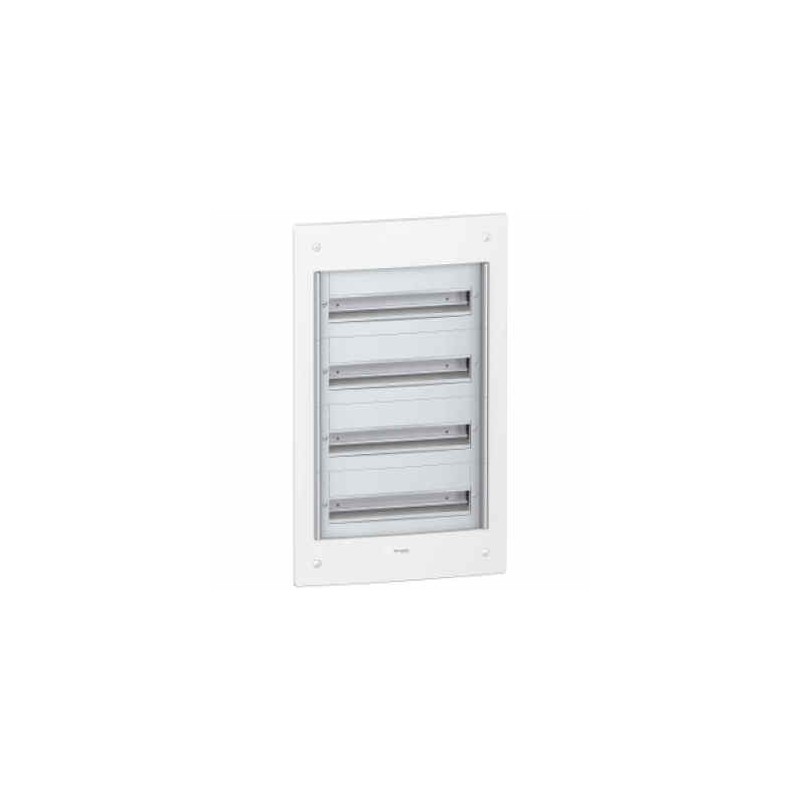 Cuadro empotrable de la gama Pragma con capacidad para 18 módulos distribuidos en 4 filas. Ofrece una instalación segura y ordenada, con diseño robusto y estético para integración en paredes. Ideal para aplicaciones residenciales y terciarias, garantizando accesibilidad, protección y organización en la distribución eléctrica.