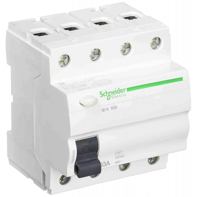 Diferencial Schneider Electric SCHA9Z06463 de 4 polos, con corriente nominal de 63A y sensibilidad de 300mA, clase AC. Ofrece protección frente a fugas a tierra y contactos indirectos, detectando corrientes alternas sinusoidales de manera fiable. Su formato tetrapolar permite una instalación segura en redes trifásicas, siendo una solución práctica y robusta para aplicaciones residenciales y terciarias.