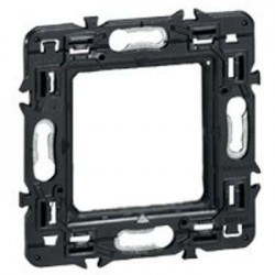 Soporte metálico Legrand LEG080251, para 2 módulos (1 puesto), compatible con las series Mosaic y Mosaic II. Fabricado en metal galvanizado, se instala en cajas empotradas con fijación por tornillos. Permite montaje horizontal (2 módulos) o vertical (1 módulo). Incluye tapa de protección roja para obra, ideal para trabajos de pintura o reformas.