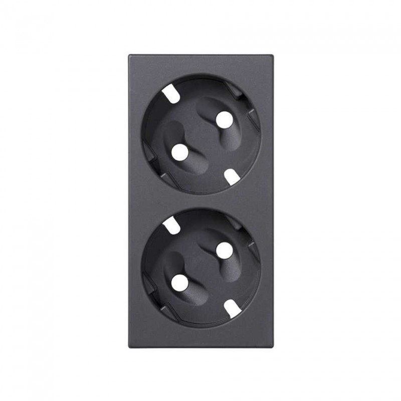 Tapa diseñada para cubrir una toma doble Schuko en sistema K45, sin indicador LED. El modelo SIM50001041038, en color grafito, proporciona un acabado estético y seguro, protegiendo las conexiones eléctricas. Su construcción robusta garantiza durabilidad y un uso fiable en instalaciones residenciales o profesionales.